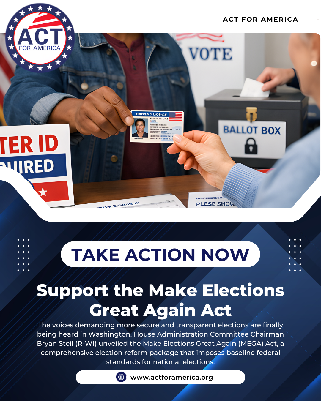 Urge them to support the MEGA Act and protect election integrity. Act for America